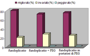 L�elemento che si mostra con maggior chiarezza in tutti e tre i sottogruppi � l�incremento ponderale, con un miglioramento dello stato nutrizionale, pi� marcato nei i bambini sottoposti, nella stessa seduta operatoria, a fundoplicatio e PEG (Figura 1).